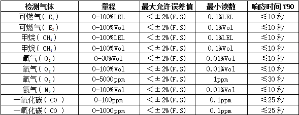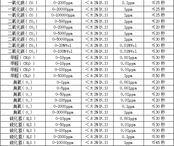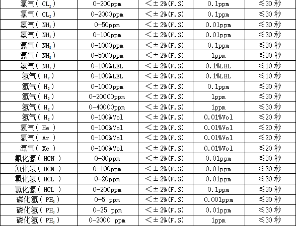 檢測(cè)范圍:0-1、10、100、1000、5000、50000、100000ppm、200毫克、升、100%LEL%、50%、99.999%、100%vol可選,其他量程可訂制。