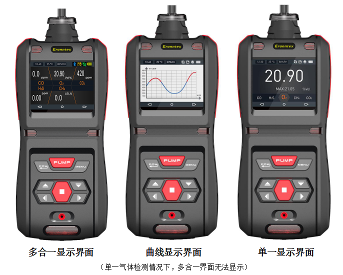 檢測(cè)方式:內(nèi)置泵吸式測(cè)量,響應(yīng)迅速,采樣距離超過(guò)10米,特殊氣路設(shè)計(jì),可直接檢測(cè)負(fù)壓或正壓-0.5~2公斤的氣體,對(duì)測(cè)量結(jié)果無(wú)影響;可以同時(shí)檢測(cè)1~5種氣體。